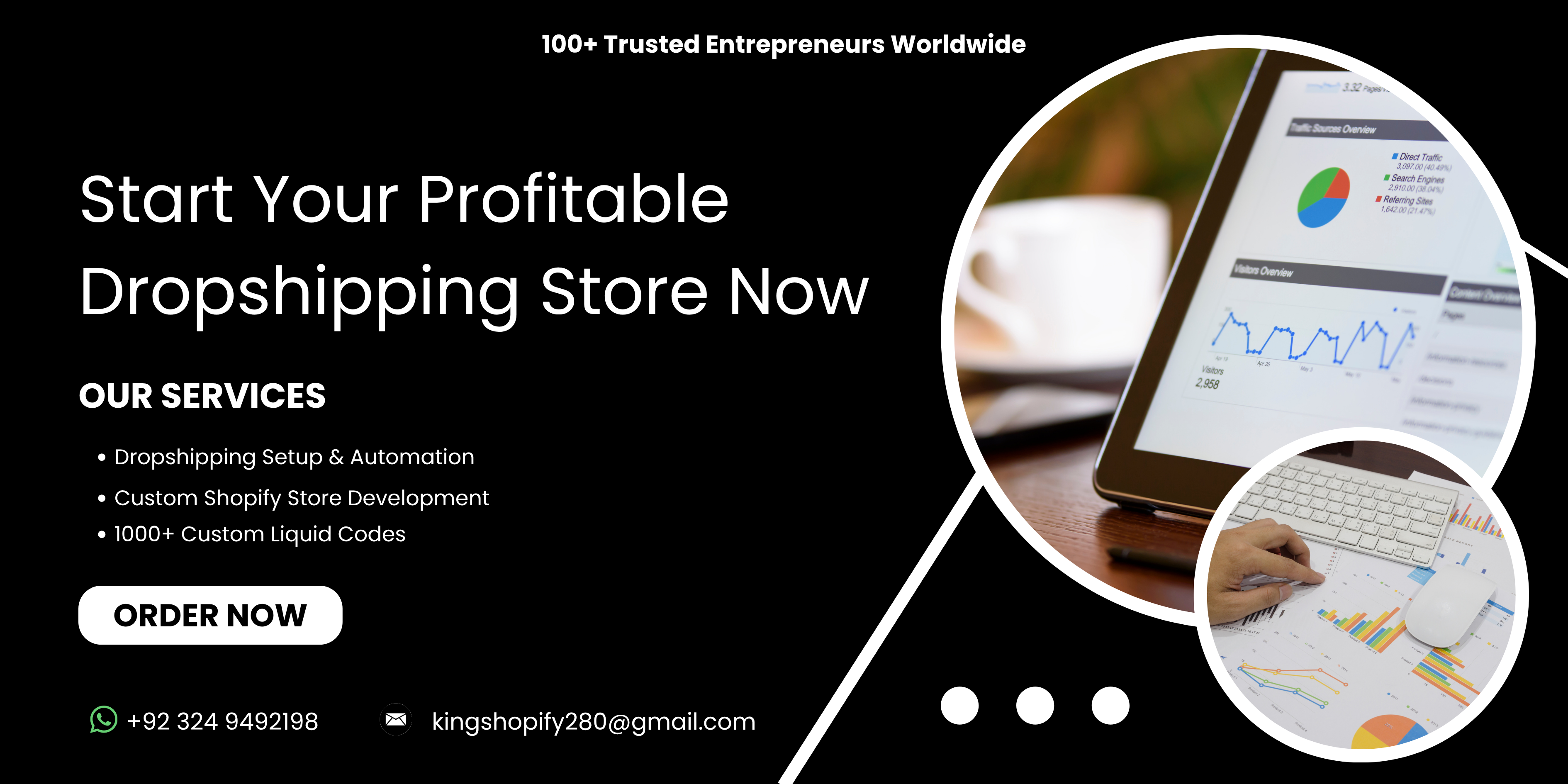"Trusted by 100+ entrepreneurs worldwide to built custom Shopify & dropshipping stores."